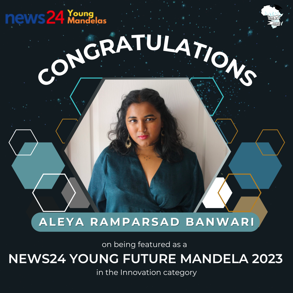 Our founder, Aleya Ramparsad Banwari, was recognised by News24 as a Young Mandela of the Future in 2023.